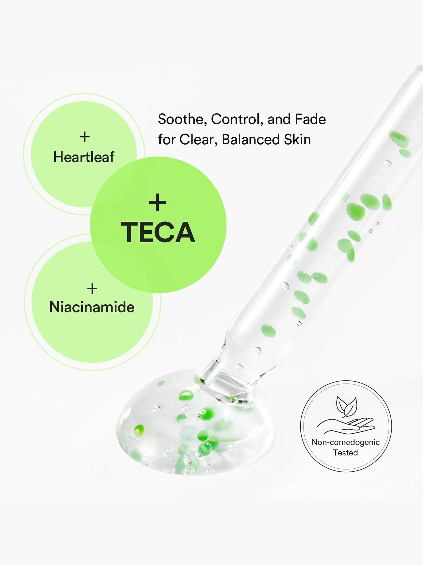 The Abib Heartleaf TECA Capsule Serum Calming Drop is a soothing serum to instantly soothe irritation, combat acne breakouts and reduce redness! Formulated with TECA, a key ingredient of Centella Asiatica to soothe skin troubles without irritation, while Abib's unique ingredient, Heartleaf Elixir, is extracted at high concentration to provide powerful soothing care. Also enriched with Niacinamide and Glycerin to keep skin bright and hydrated.
