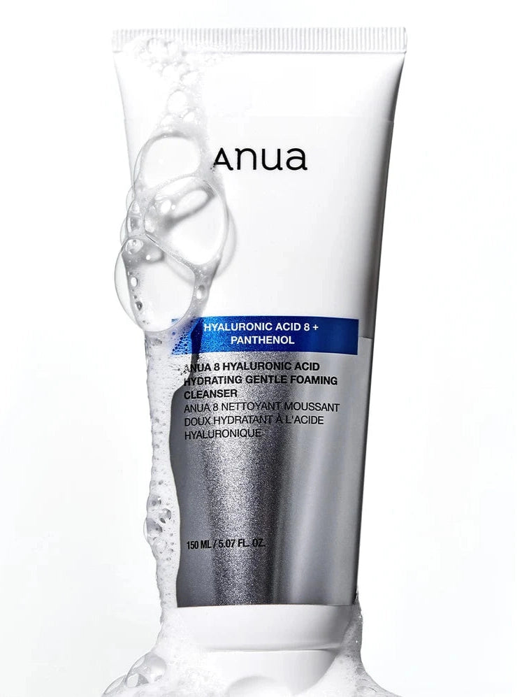 The Anua 8 Hyaluronic Acid Hydrating Gentle Foaming Cleanser is a gentle yet effective everyday cleanser to remove dirt, oil and debris without stripping skin. Formulated with 8 kinds of Hyaluronic Acid and Panthenol to instantly hydrate skin and replenish skin barrier, while deeply cleansing pores without stripping skin. Also contains Zinc PCA to help regulate sebum secretion and reduce redness, while Hydrolysed Vegetable Protein support skin elasticity and repair, boosting skin hydration and refining skin texture. The cream formula transforms easily to foam upon contact with water to leave skin clear and refreshed.