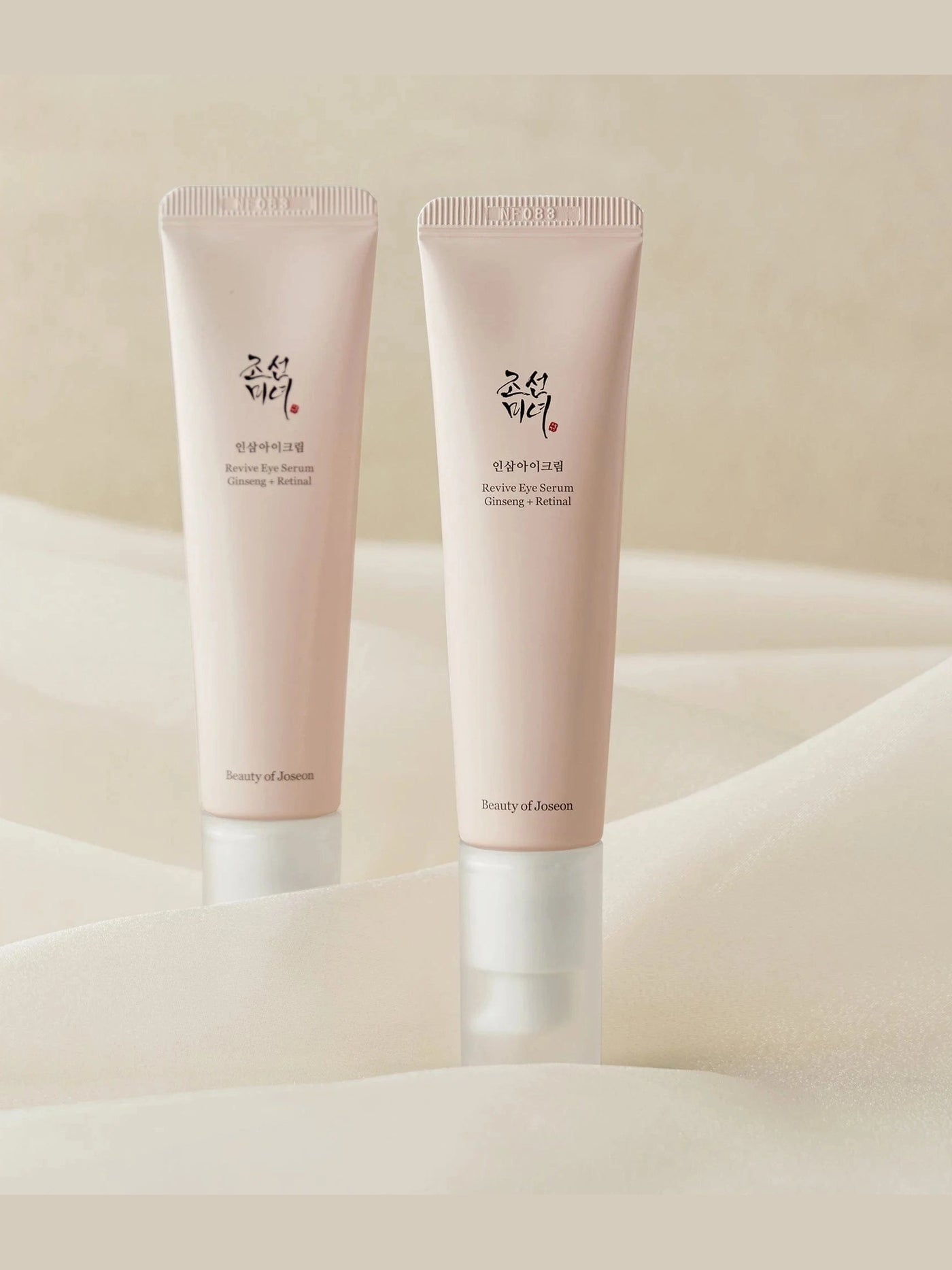 The Beauty of Joseon Revive Eye Serum : Ginseng + Retinal is infused with 10% Ginseng Root Extract and 2% Retinal to improve wrinkles around the eyes. The rich saponin contained in ginseng helps quickly supply moisture and maintain it deep inside the skin for a long time for healthy skin. Vitamin A in Retinal promotes rapid absorption of active ingredients for excellent elasticity care. Niacinamide is also present to help brighten dark circles.