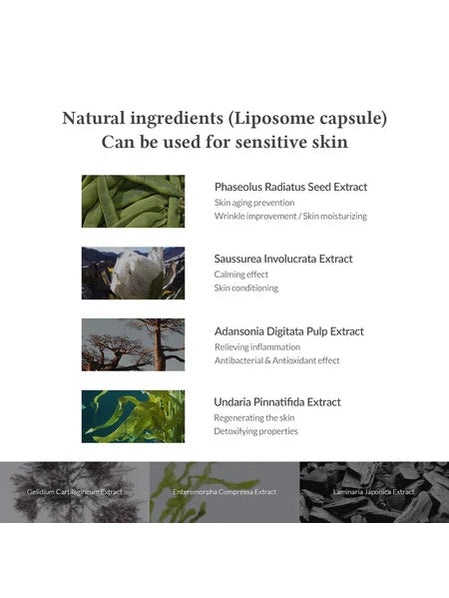 Water/Aqua, Glycerin, 1,2 Hexanediol, Butylene Glycol, Phenoxyethanol, Arctium Lappa Root Extract, Chrysanthemum Sinense Flower Extract, Codonopsis Lanceolata Root Extract, Hovenia Dulcis Fruit Extract, Magnolia Kobus Branch/Flower/Leaf Extract, Salix Alba (Willow) Bark Extract, Schisandra Chinensis Fruit Extract, Hamamelis Virginiana (Witch Hazel) Extract, Polyglyceryl-10 Isostearate, Hydrogenated Lecithin, PEG 40 Hydrogenated Castor Oil, Potassium Hydroxide, Polyglyceryl 10 Oleate, Mentha Piperita (Peppermint) Extract, Phytosterols, Illicium Verum (Anise) Fruit Extract, Eucalyptus Globulus Leaf Oil, Sodium Gluconate, Mentha Piperita (Peppermint) Oil, Panthenol, Scutellaria Baicalensis Root Extract, Ascophyllum Nodosum Extract, Dipotassium Glycyrrhizate, Epilobium Angustifolium Flower/Leaf/Stem Extract, Portulaca Oleracea Extract, Phaseolus Radiatus Seed Extract, Enteromorpha Compressa Extract, Gelidium Cartilagineum Extract, Undaria Pinnatifida Extract, Laminaria Japonica Extract, Adansonia Digitata Pulp Extract, Saussurea Involucrata Extract