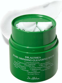 The Dr. Althea Pure Grinding Cleansing Balm is formulated with 14 essential ingredients that offer a gentle cleansing experience for sensitive skin. Its hygienic grinding mechanism allows for convenient and precise portion control without concerns of deterioration. Enriched with Camellia Sinensis Seed Oil and Vitis Vinifera (Grape) Seed Oil, it leaves the skin moisturised and rejuvenated. Also infused with Madecassoside and Centella Extract to help soothe sensitive and acne-prone skin, reducing redness and irritation. The balm's strong cleansing effect effortlessly removes sunscreen, makeup and waterproof products, minimising heaviness and oiliness.