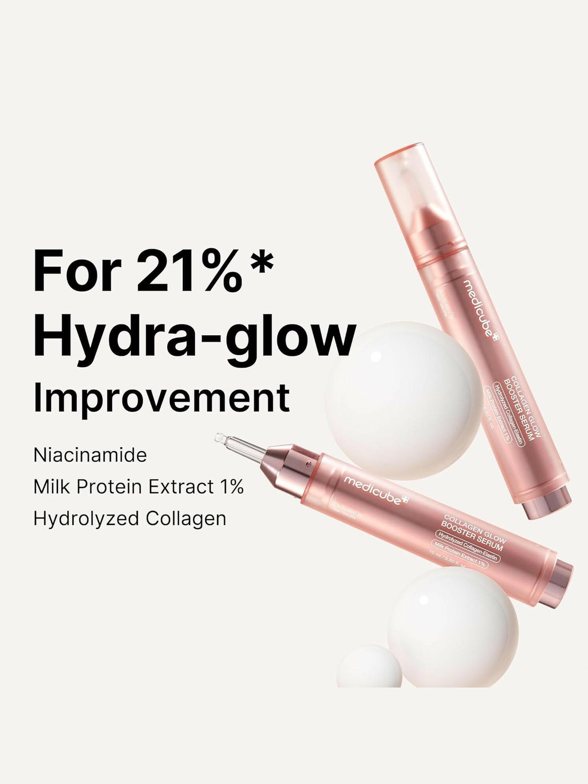 The Medicube Collagen Glow Booster Serum is an innovative serum that boosts collagen production, hydrates deeply and leaves your skin looking youthful and luminous. Enriched with Milk Protein, Collagen and Elastin to improve skin elasticity and reduce wrinkles, while gently exfoliating dead skin cells. Also packed with Niacinamide to improve skin texture and help promote a brighter complexion.