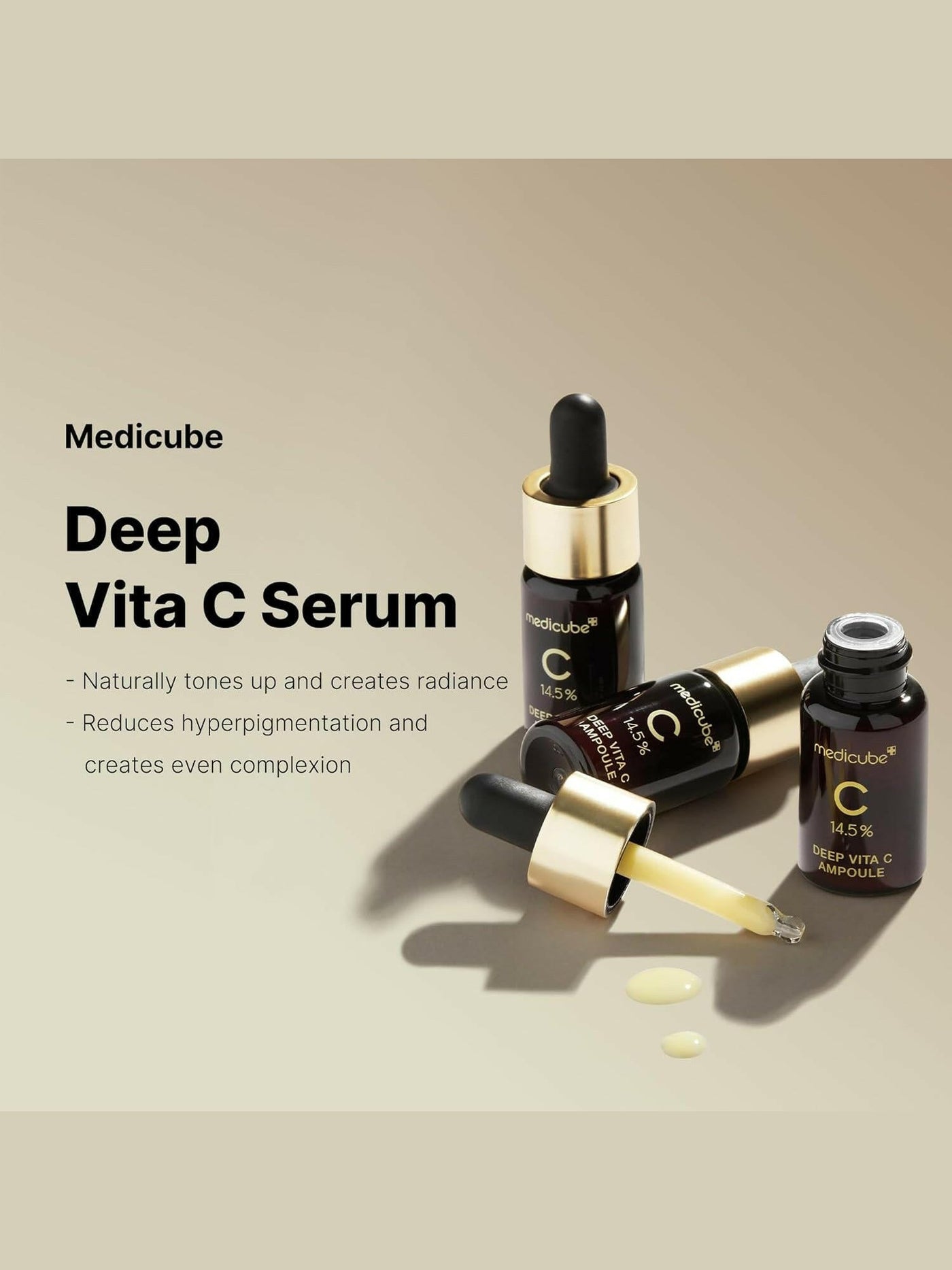 The Medicube Deep Vita C Ampoule 2.0 is a potent Vitamin C serum designed to reduce hyperpigmentation, even out skin tone and enhance skin radiance. Enriched with 14.5% Vitamin C and Alpha-bisabolol, this ampoule targets dark spots, uneven skin tone and signs of ageing, promoting a luminous complexion. Its lightweight formula penetrates deeply, delivering antioxidants that help protect against environmental stressors. With added hydrating ingredients, it nourishes the skin, leaving it feeling soft and radiant.