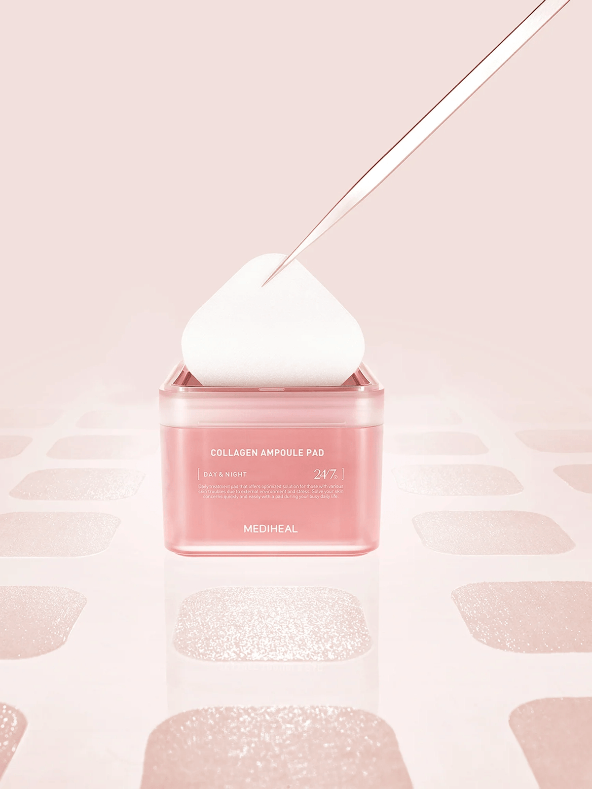 Mediheal Collagen Ampoule Pad nourishes and firms aging, sagging skin and improves the appearance of wrinkles and fine lines. Formulated with our CollagenFactor™ complex and liposome delivery system for optimal results. It is proven to help improve skin elasticity and reduce the appearance of wrinkles. It instantly improves skin elasticity by 106% and reduces the appearance of fine lines in the eye area and smile lines by 30% and forehead lines by 33%.