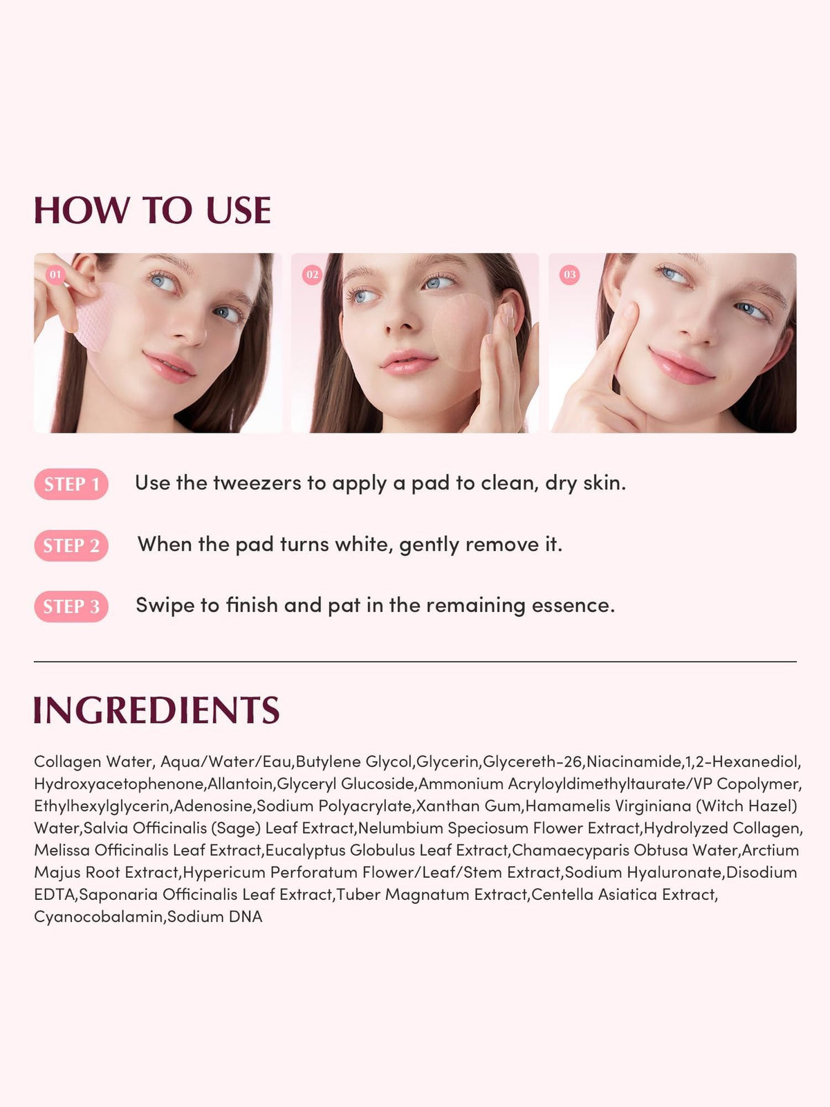 Collagen Pore-Tight Up Gel Toner Pads deliver a powerful boost of 410,000ppm collagen water and low-molecular collagen to deeply hydrate, firm, and tighten pores. Infused with Lotus PDRN and white truffle, these pads purify pores, improve elasticity, and smooth skin texture. The soft hydrogel material clings comfortably to skin for a no-slip fit, while providing a calming, cooling sensation. Ideal for daily use, even on sensitive skin. Achieve visibly refined pores and a firmer, glowing complexion in one simple step.