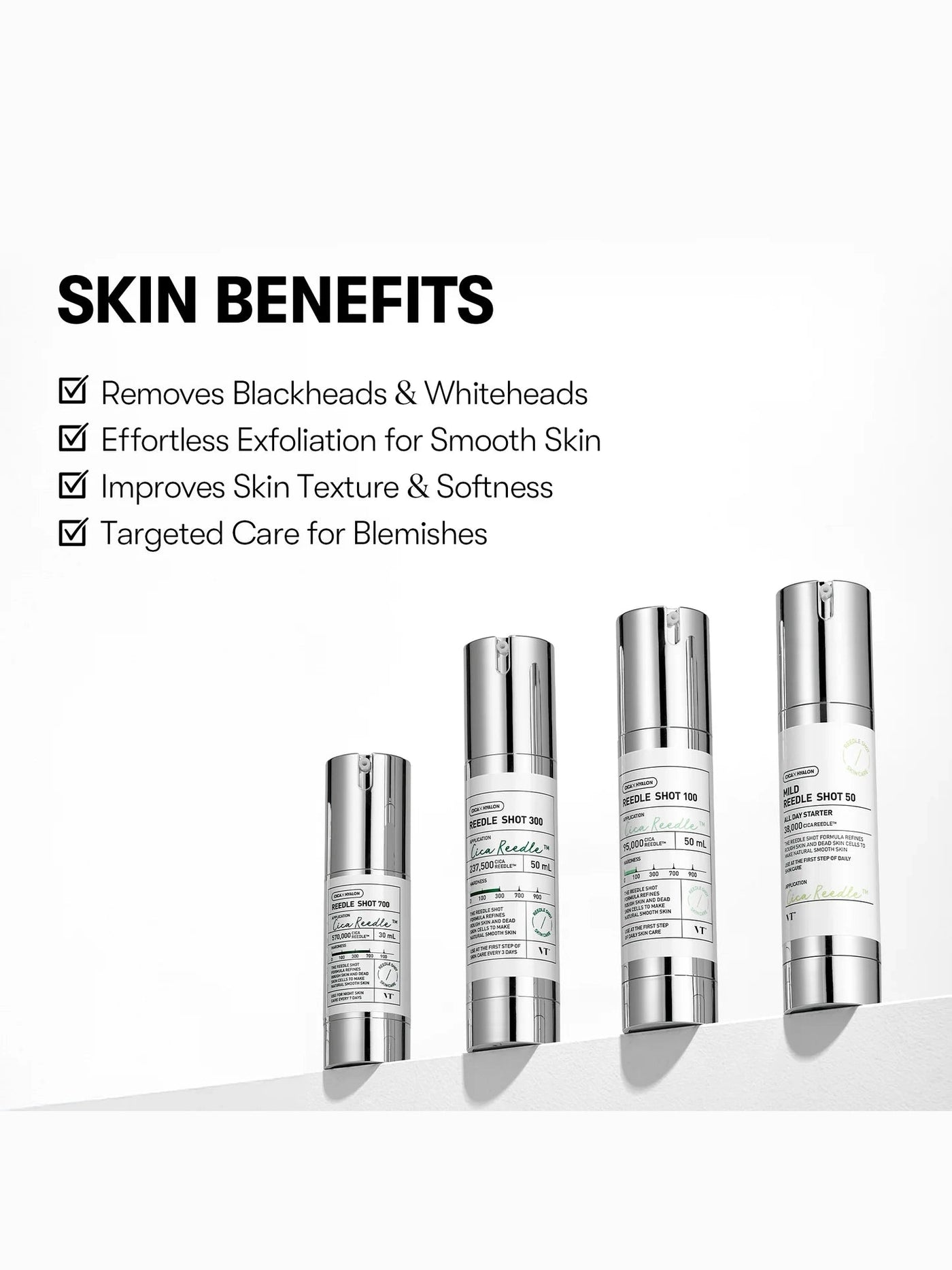 The VT Cosmetics Reedle Shot 100 is an innovative skin treatment ampoule that penetrates into the deeper parts of your skin to help minimise pores and improve skin texture for smoother and healthier skin. Featuring Cica Reedle™, which uses delicately shaped microneedles that facilitate absorption of active ingredients into skin to improve pores and skin texture. VT's patented Cicahyalon™ (which contains Centella Asiatica Extract and 3 types of Hyaluronic Acids) provides hydration and skin barrier care. The moisturising and soothing formula absorbs quickly to soften and refine skin.