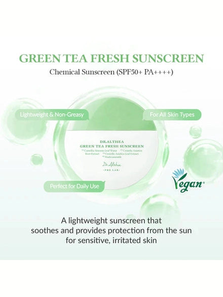 Meet Dr. Althea Green Tea Fresh Sunscreen, a Korean Green Tea Sunscreen made for everyday wear in Australia. This lightweight, soothing SPF cushions skin against UVA/UVB while calming the look of irritation. The fast absorbing, non greasy formula disappears on application no white cast, no heavy residue so it layers comfortably under makeup and wonāt weigh down oily or combination skin.Ā
