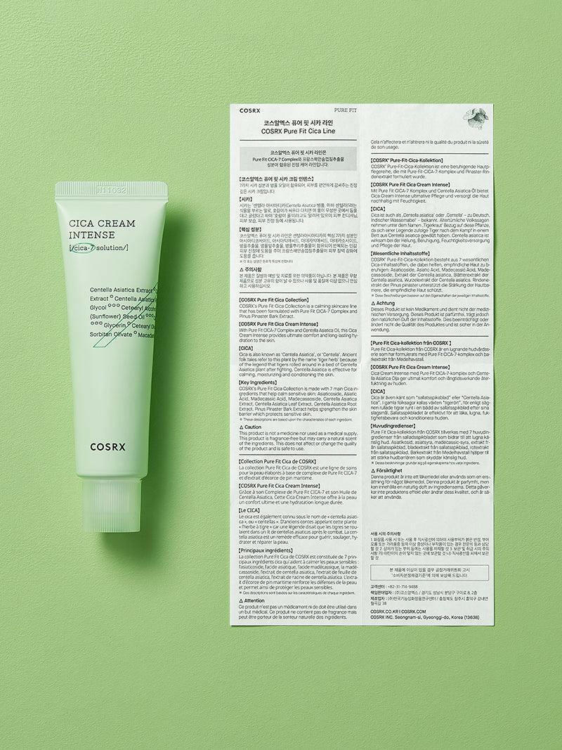 The COSRX Pure Fit Cica Cream Intense is a moisturising cica cream to soothe sensitive skin and provide deep hydration. This cream is packed with 1,000 ppm of Centella Asiatica Oil + Panthenol + Allantoin to keep skin hydrated for a long time. Strongly recommended for those with extremely dry skin, or for use in dry seasons.