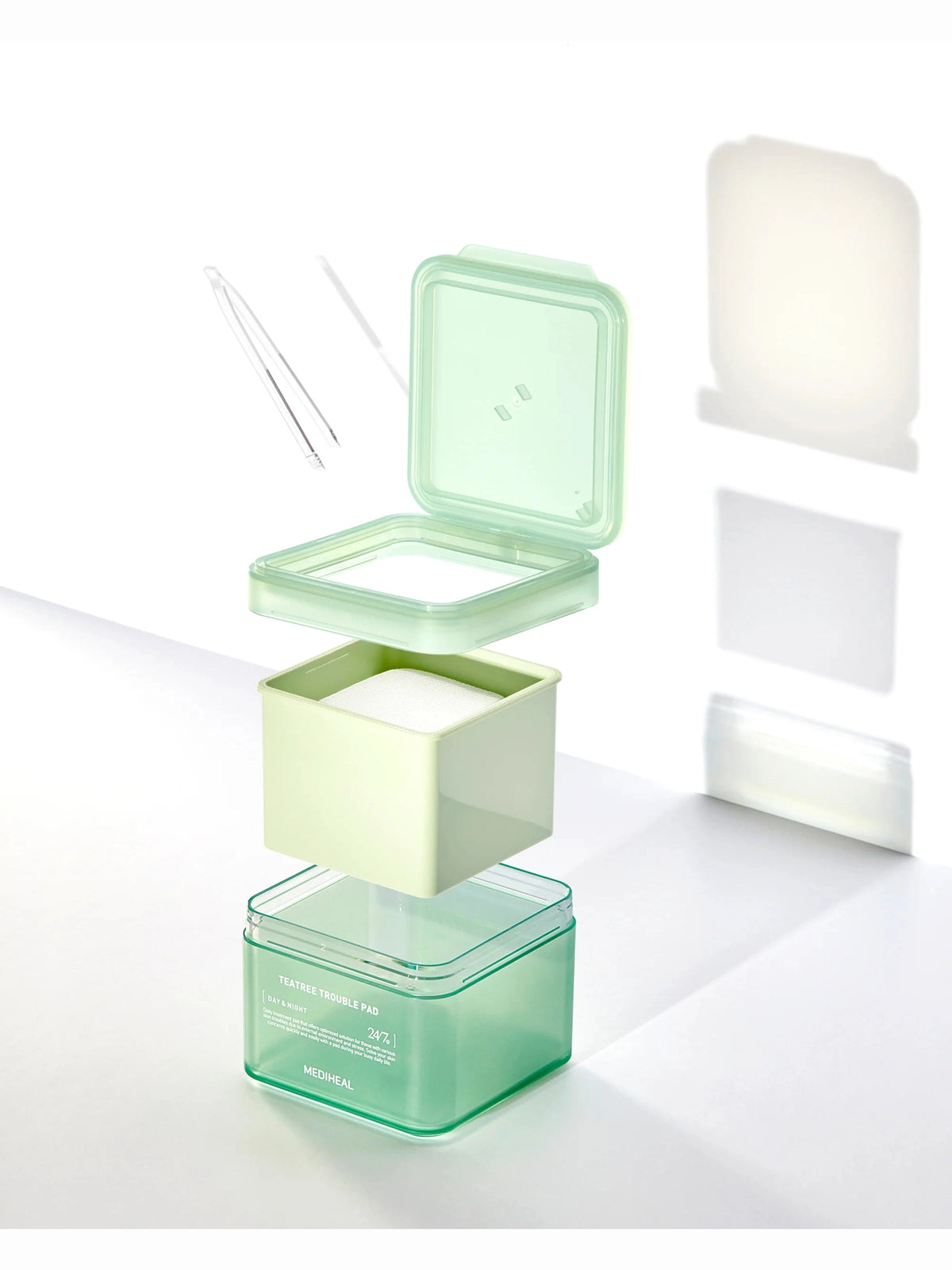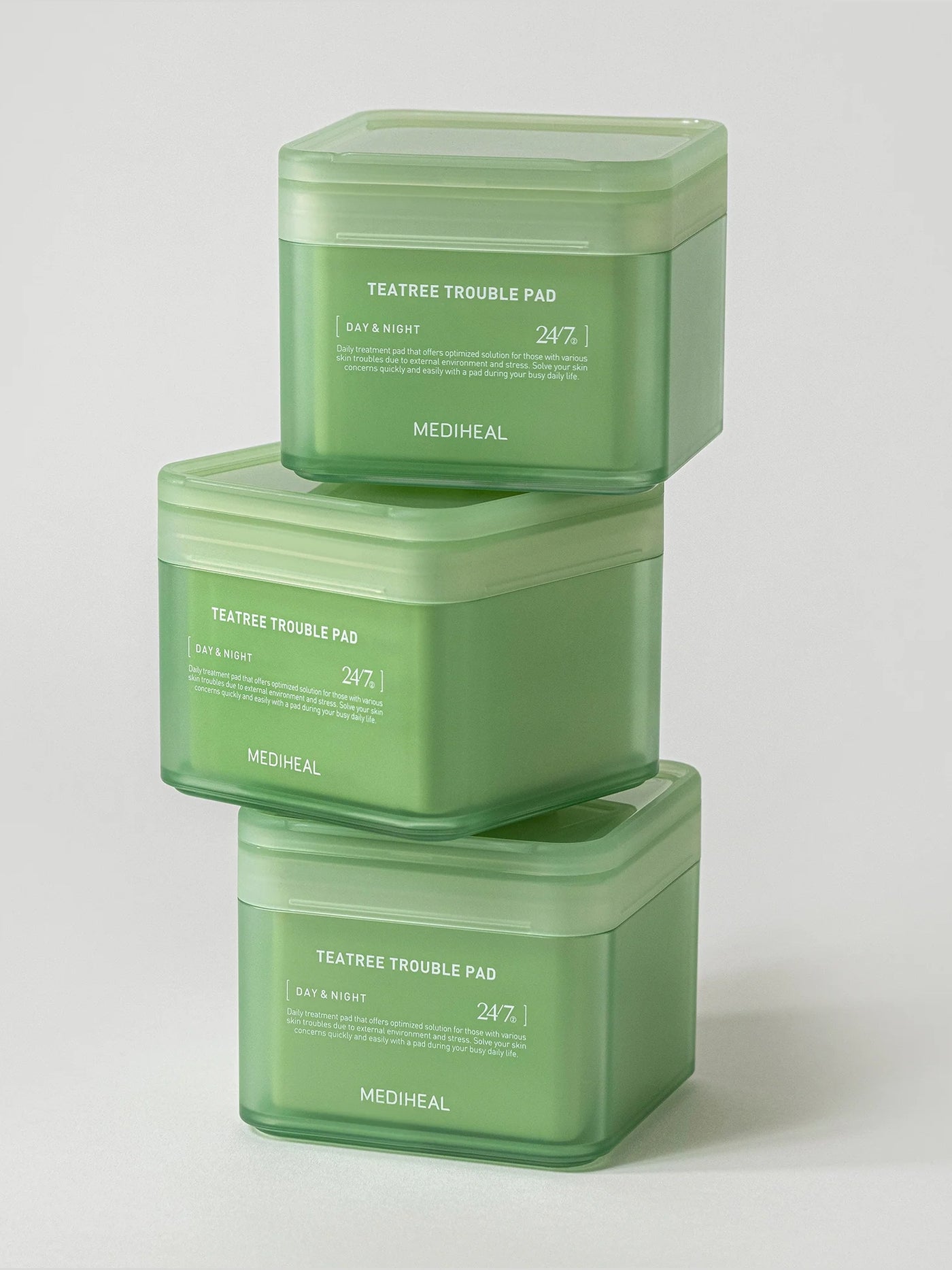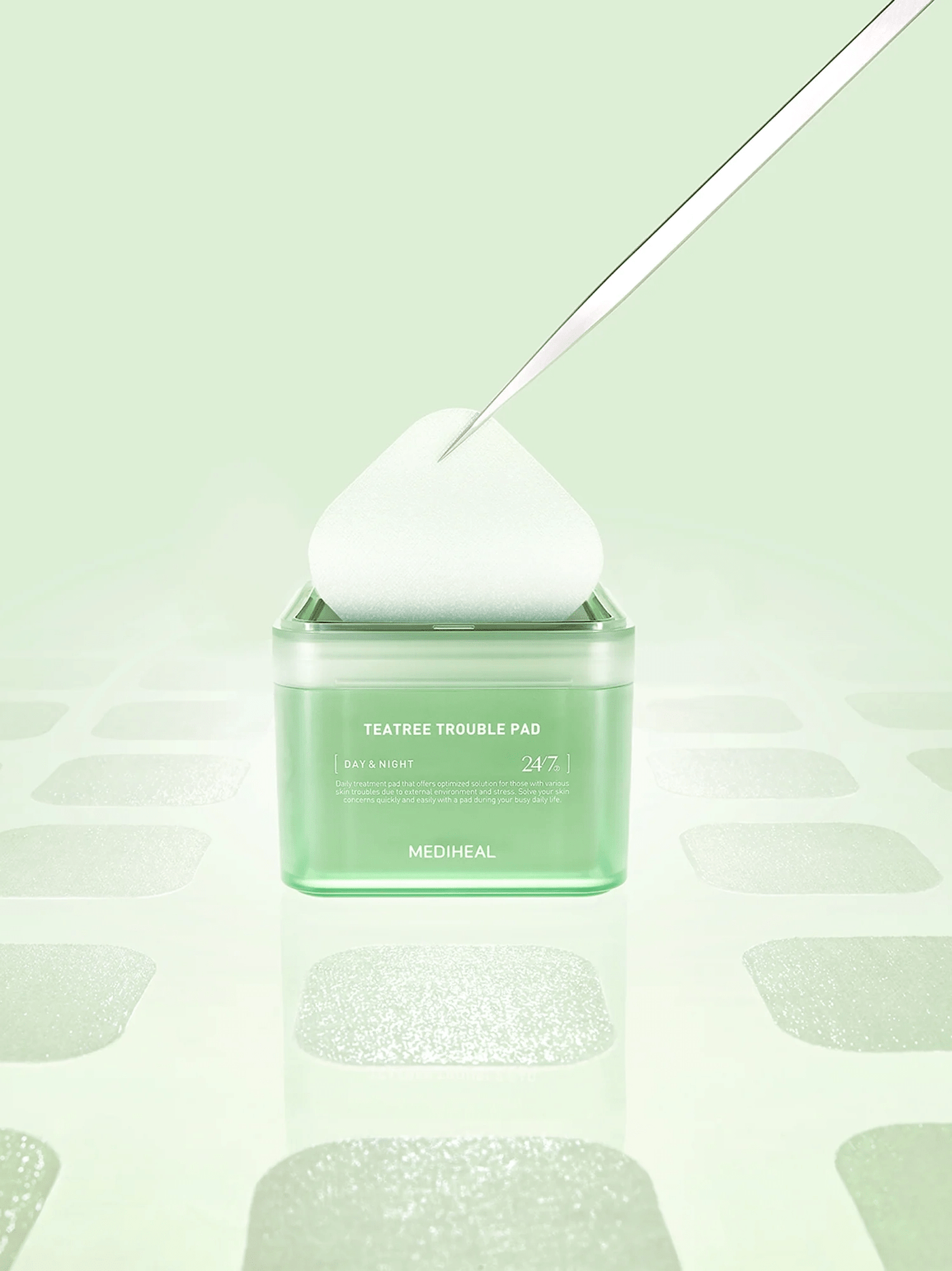 Mediheal Teatree Trouble Pad is a gentle yet concentrated treatment to calm and soothe irritated skin, featuring our exclusive TeatreePair complex and liposome delivery system for best results. It is proven to help troubled skin and instantly improve redness. After 4 weeks of use active sebaceous glands are reduced by 24%. It instantly helps soothe irritated skin and improves the appearance of redness by 66%.